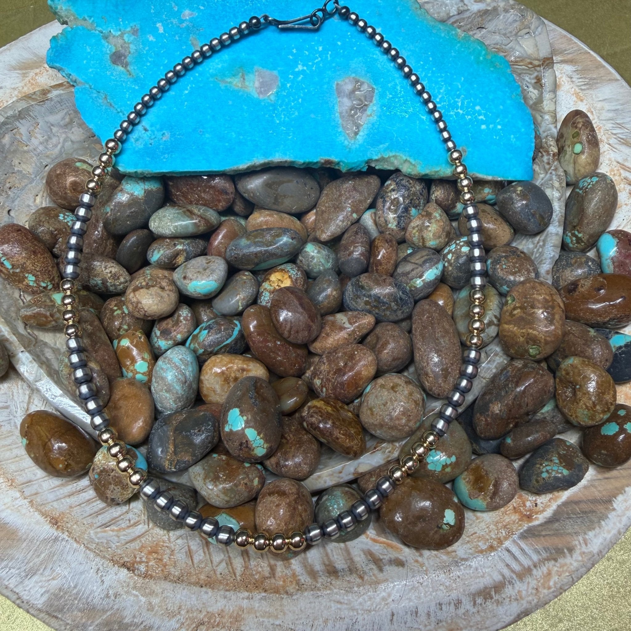 14 inch 4 Gold Pearl Sterling Silver Necklace