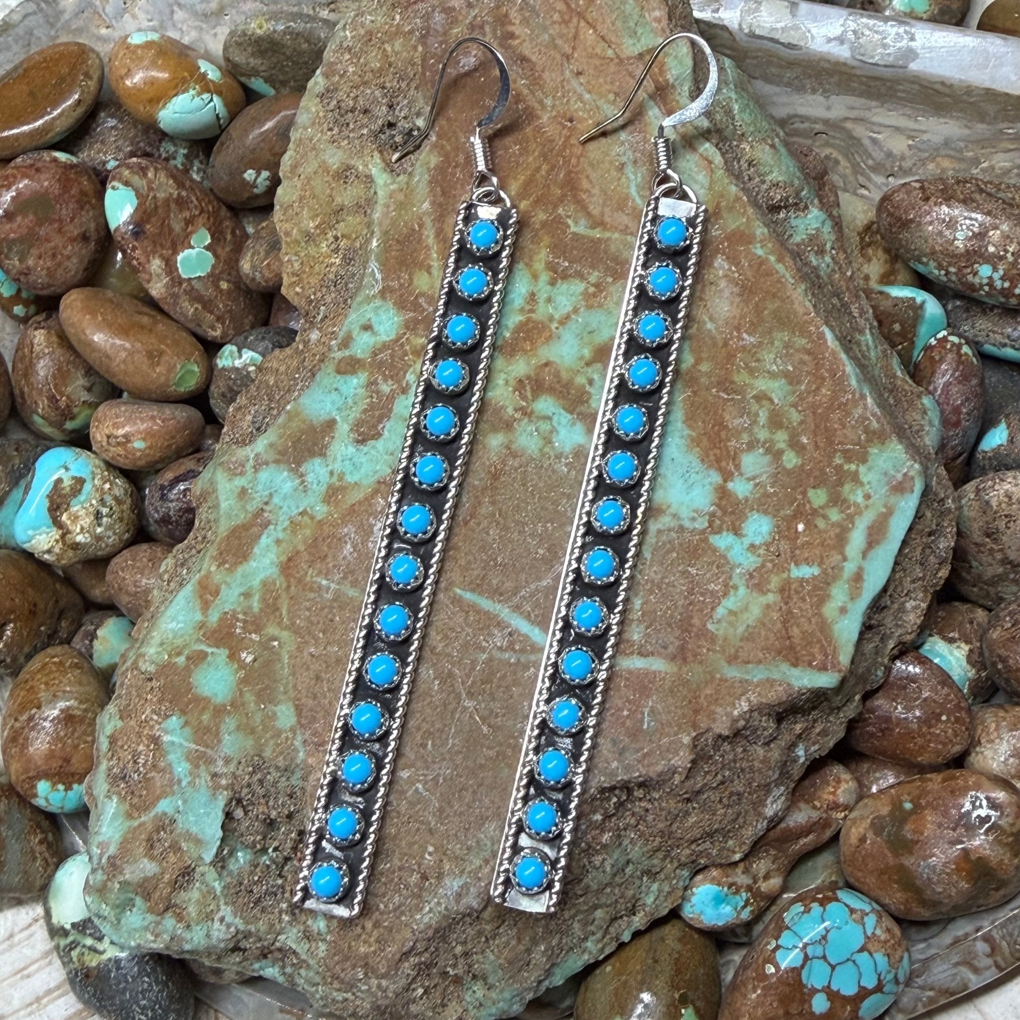 14 stone Turquoise Drop Down French Hook Sterling Silver Earring