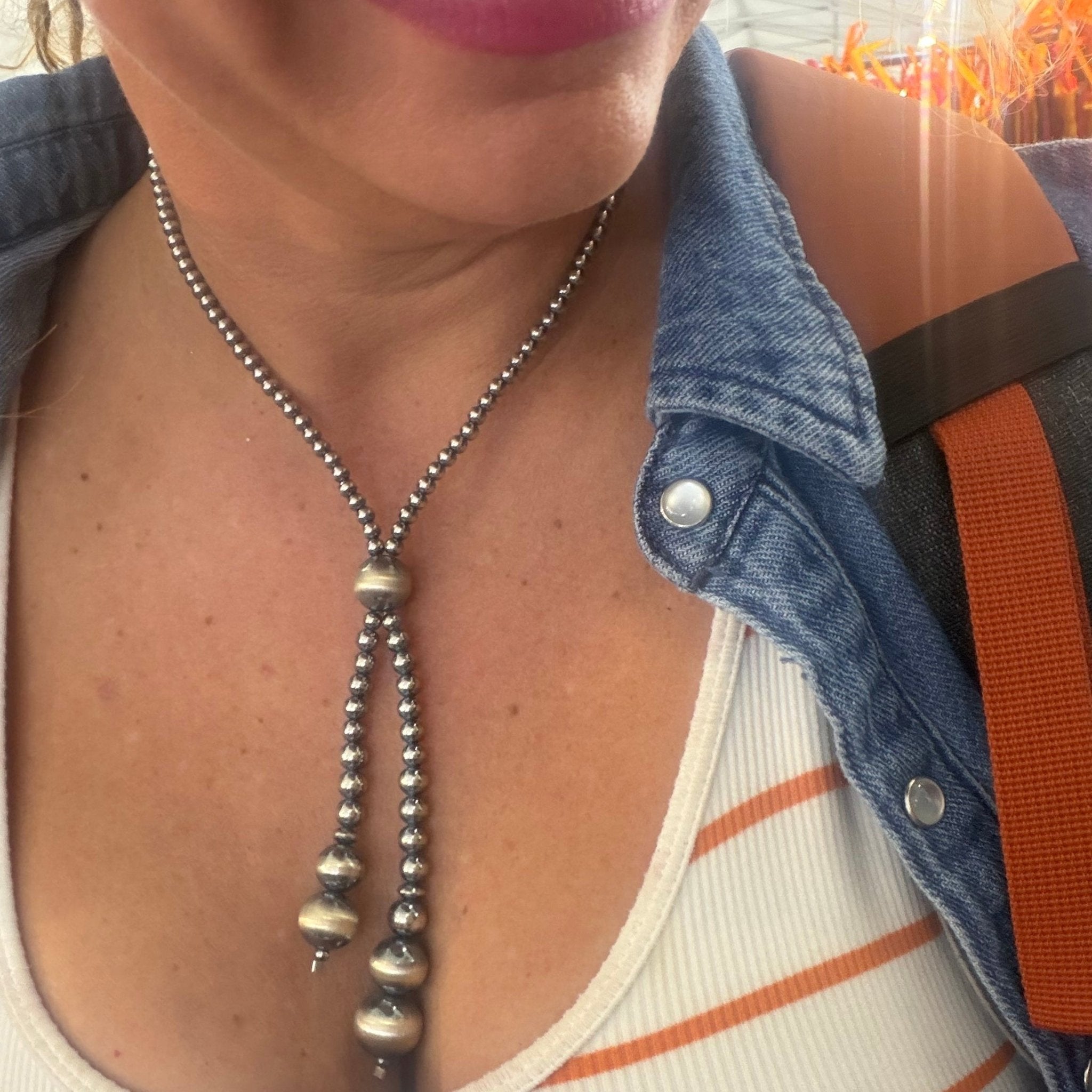 16 inch Lariat Sterling Silver Pearl Necklace