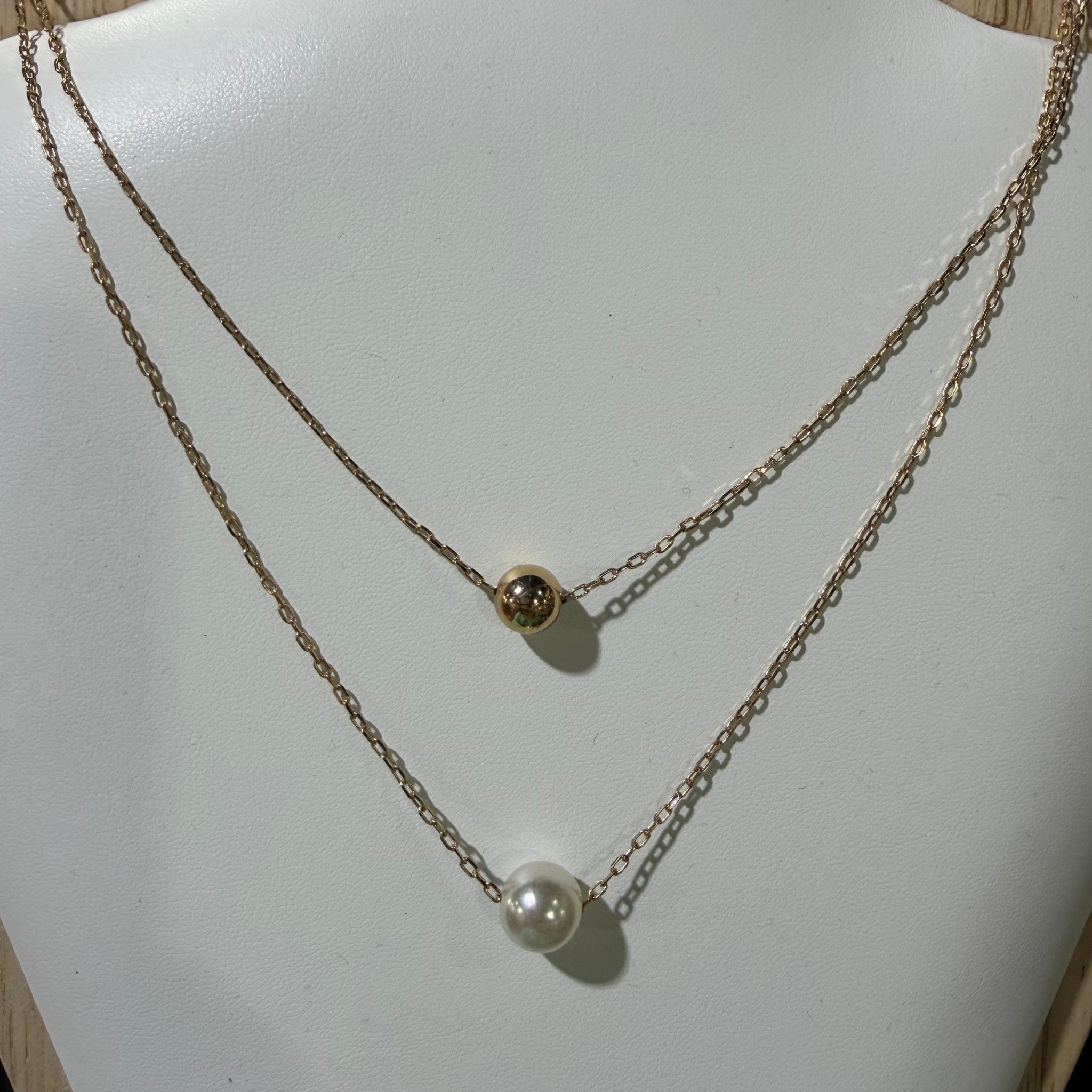 2 Chain Gold Pearl & White Pearl Fashion Necklace