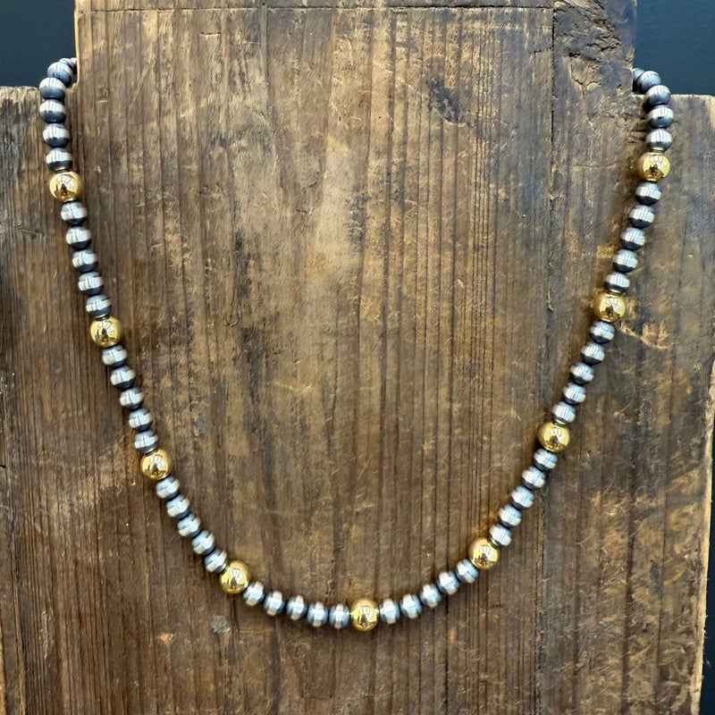 20 inch 4,6 mm Navajo Pearl With 8mm Gold Plated Pearls Patterned Sterling Silver Necklace