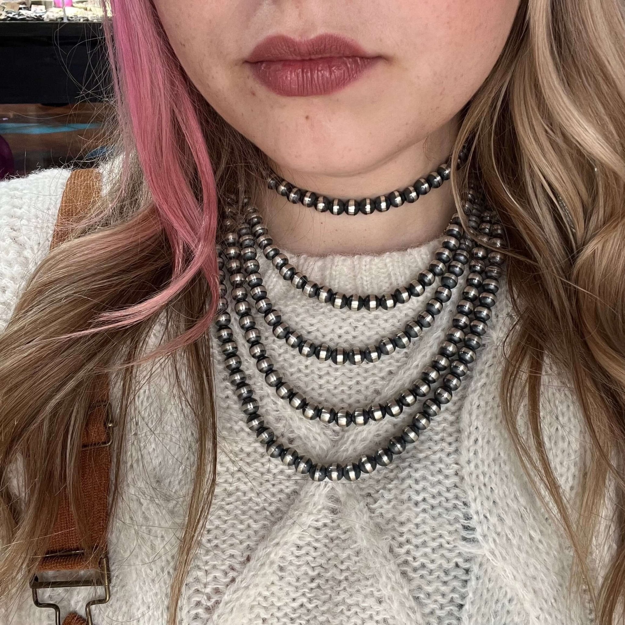 Enjoy free shipping on this Navajo Pearl Necklace when you spend over $100. Elevate your jewelry collection with this elegant and sophisticated piece that combines traditional craftsmanship with modern style.