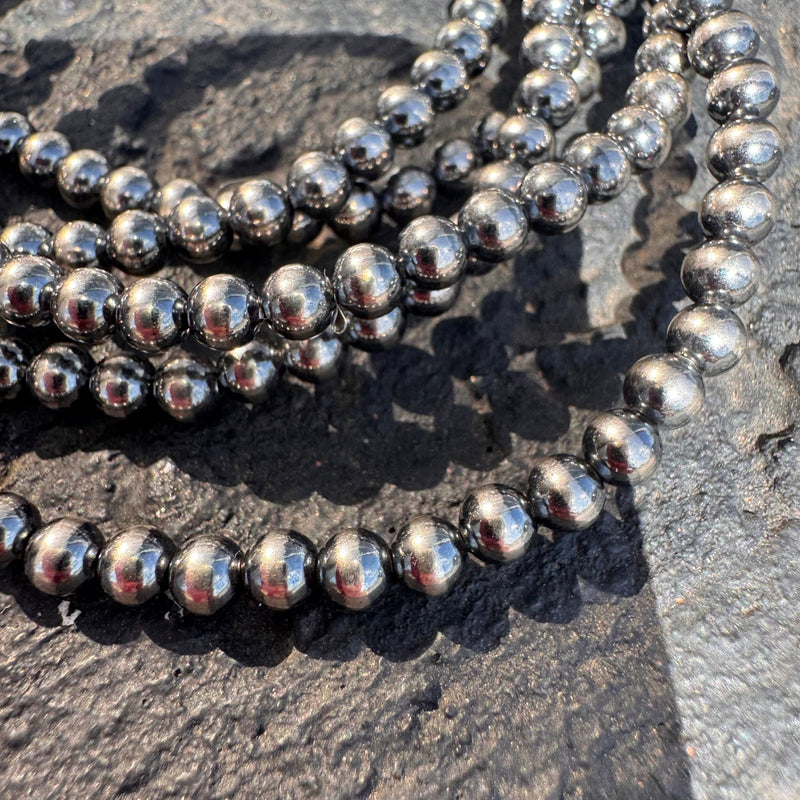 4mm Navajo Pearl Stretchy Sterling Silver Bracelet