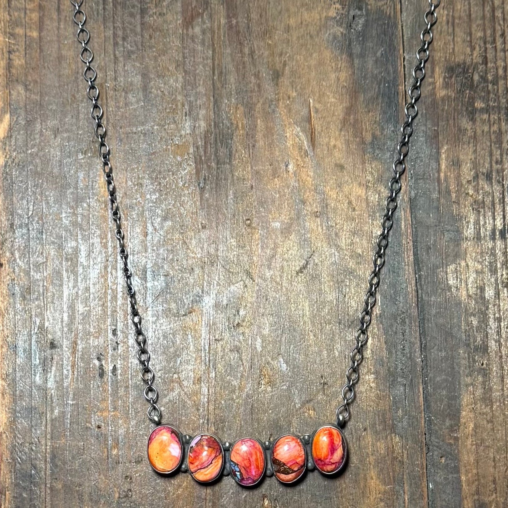 5 Stone Pink Dahlia Sterling Silver Necklace