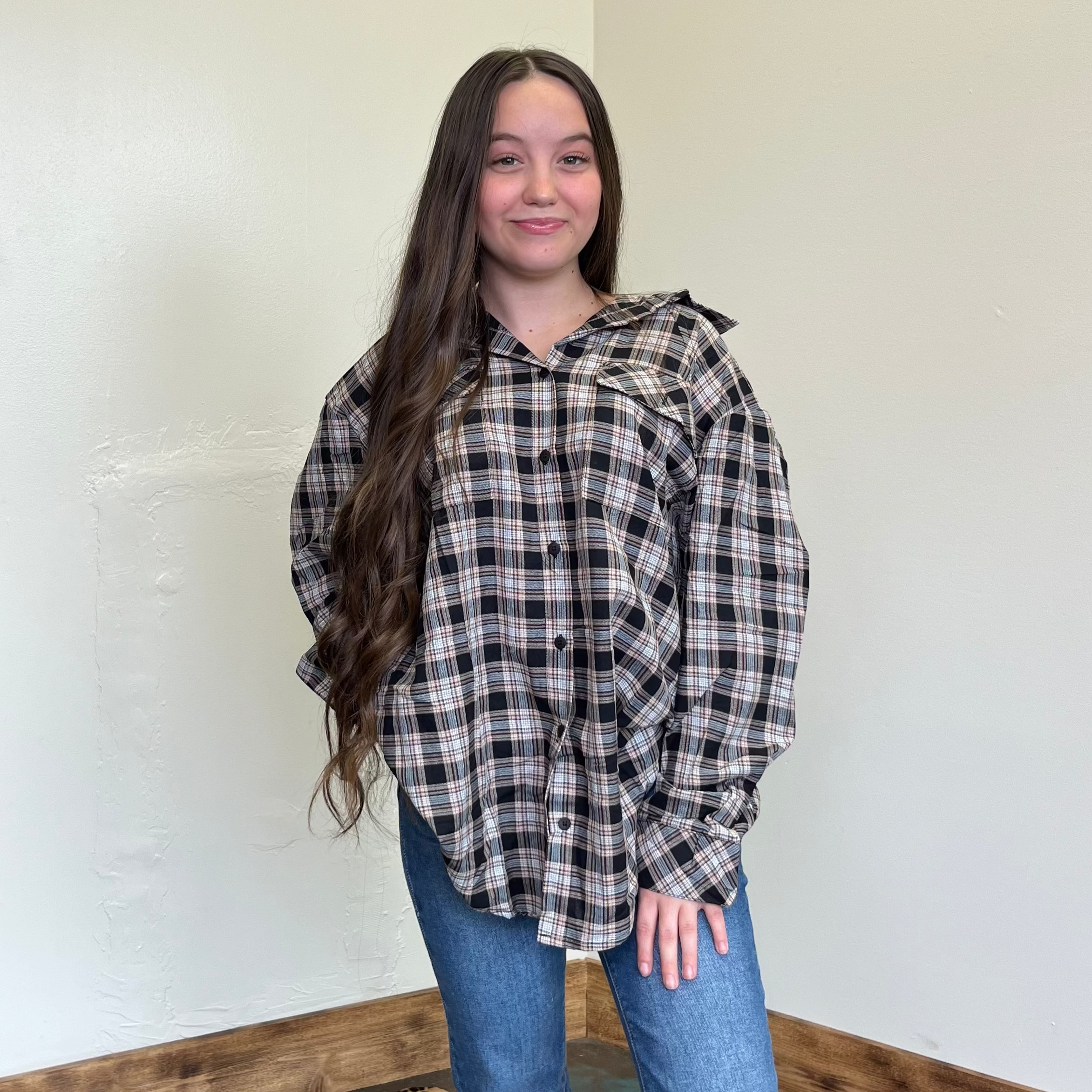 Black & Brown Plaid Top