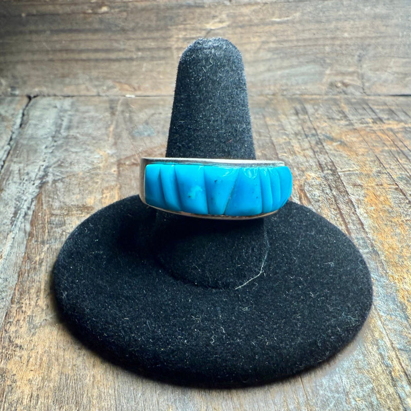 Blue Turquoise Cobblestone Sterling Silver Ring