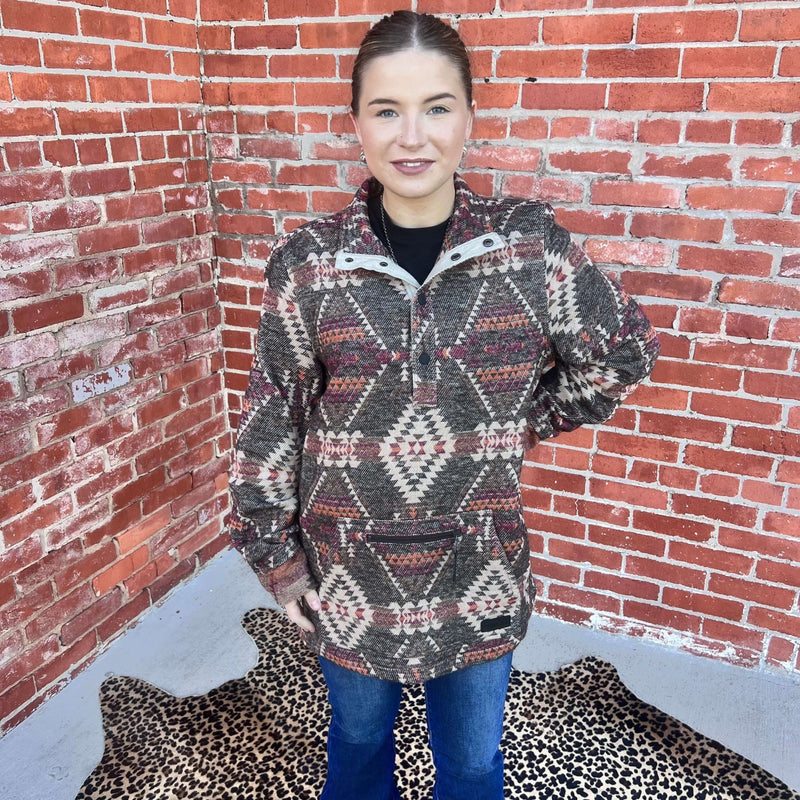 Dark Brown Rock & Roll Denim Boy's Henley Aztec Jacquard Youth Pullover