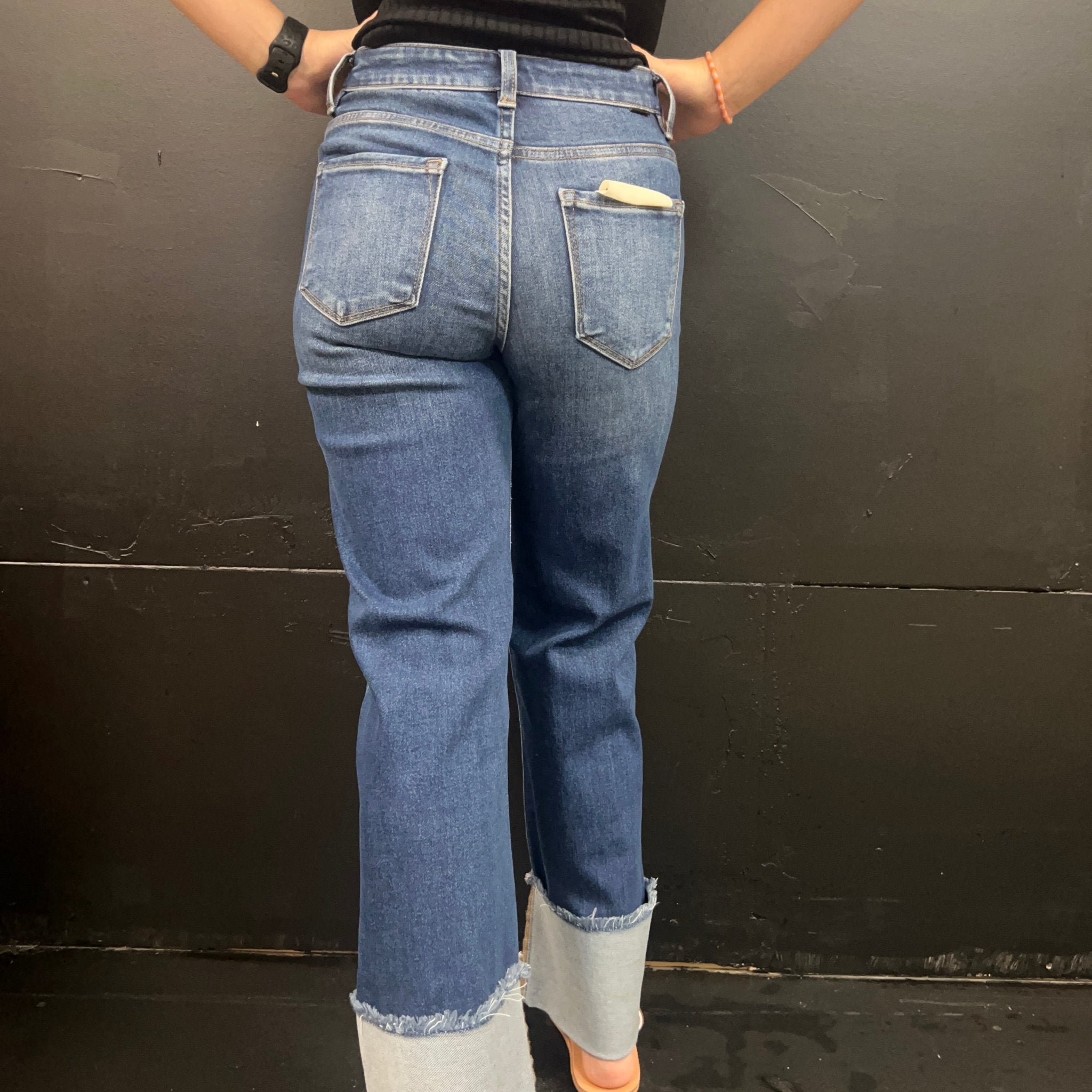 Dark Mid Rise Crop Wide-Wide Cuffed Risen Jeans
