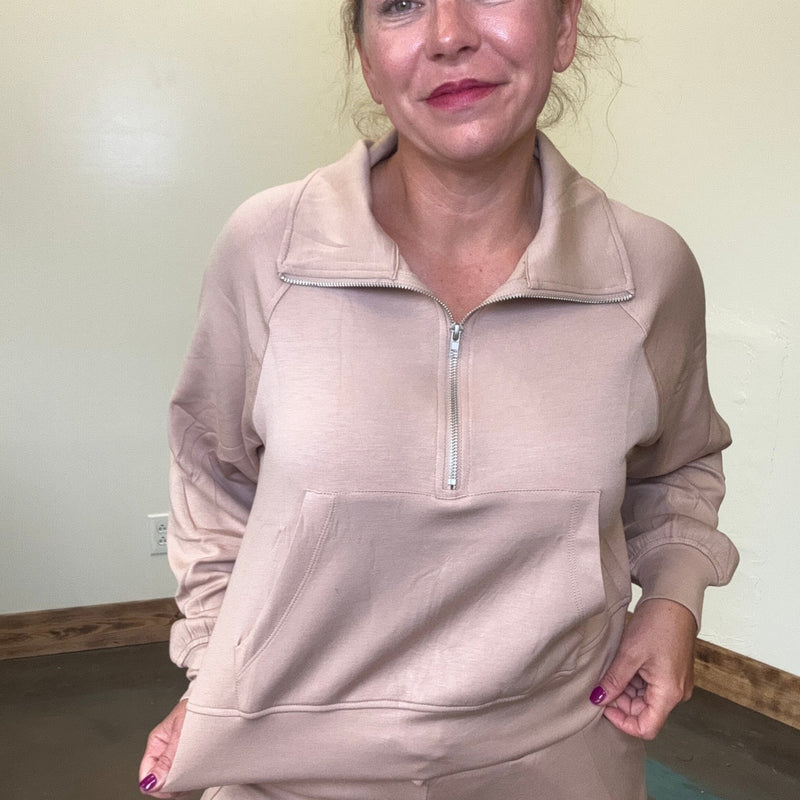 Dark Taupe Super Soft Half Zip Crop Sweat Shirt
