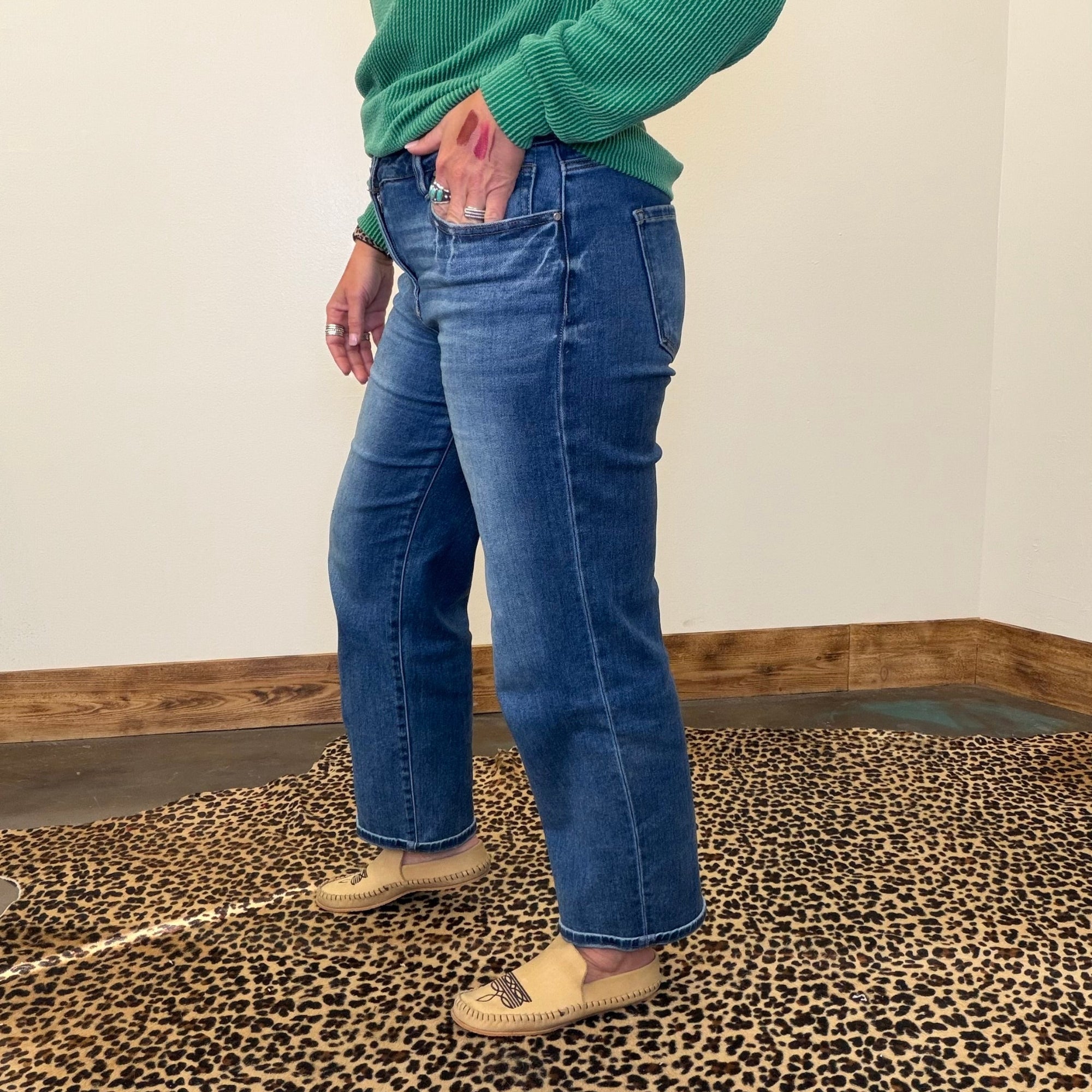 Dark Wash Mid Rise Ankle Boyfriend Turn Cuffed Risen Jeans