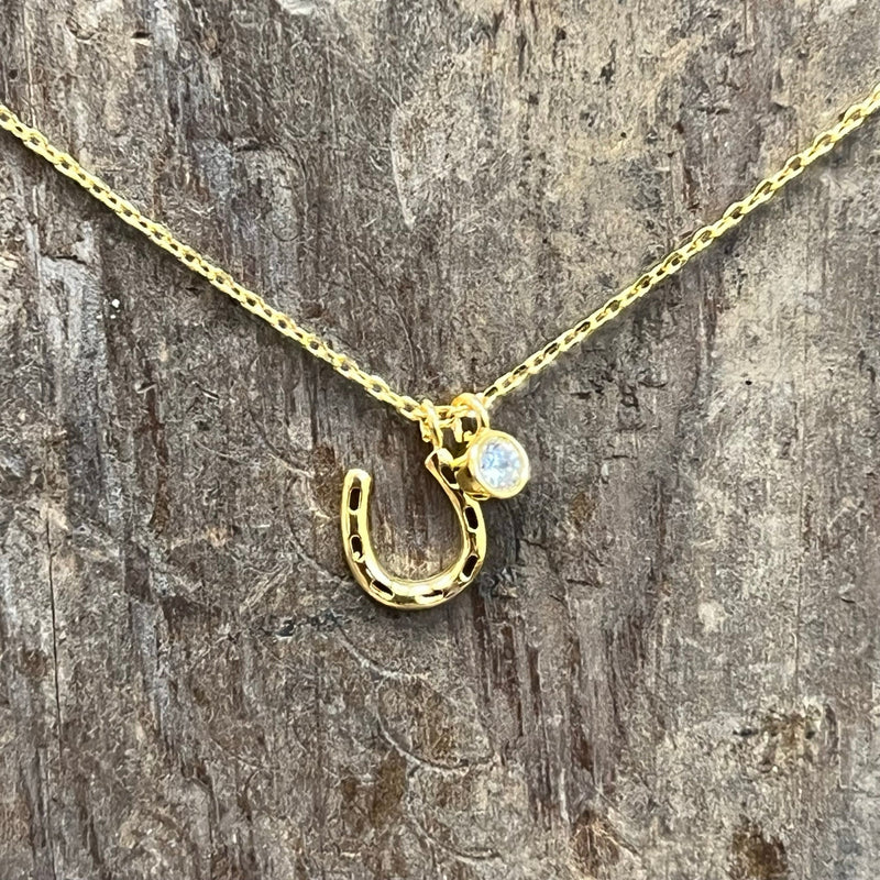 Gold Horse Shoe with Crystal Stone Fashion Necklace