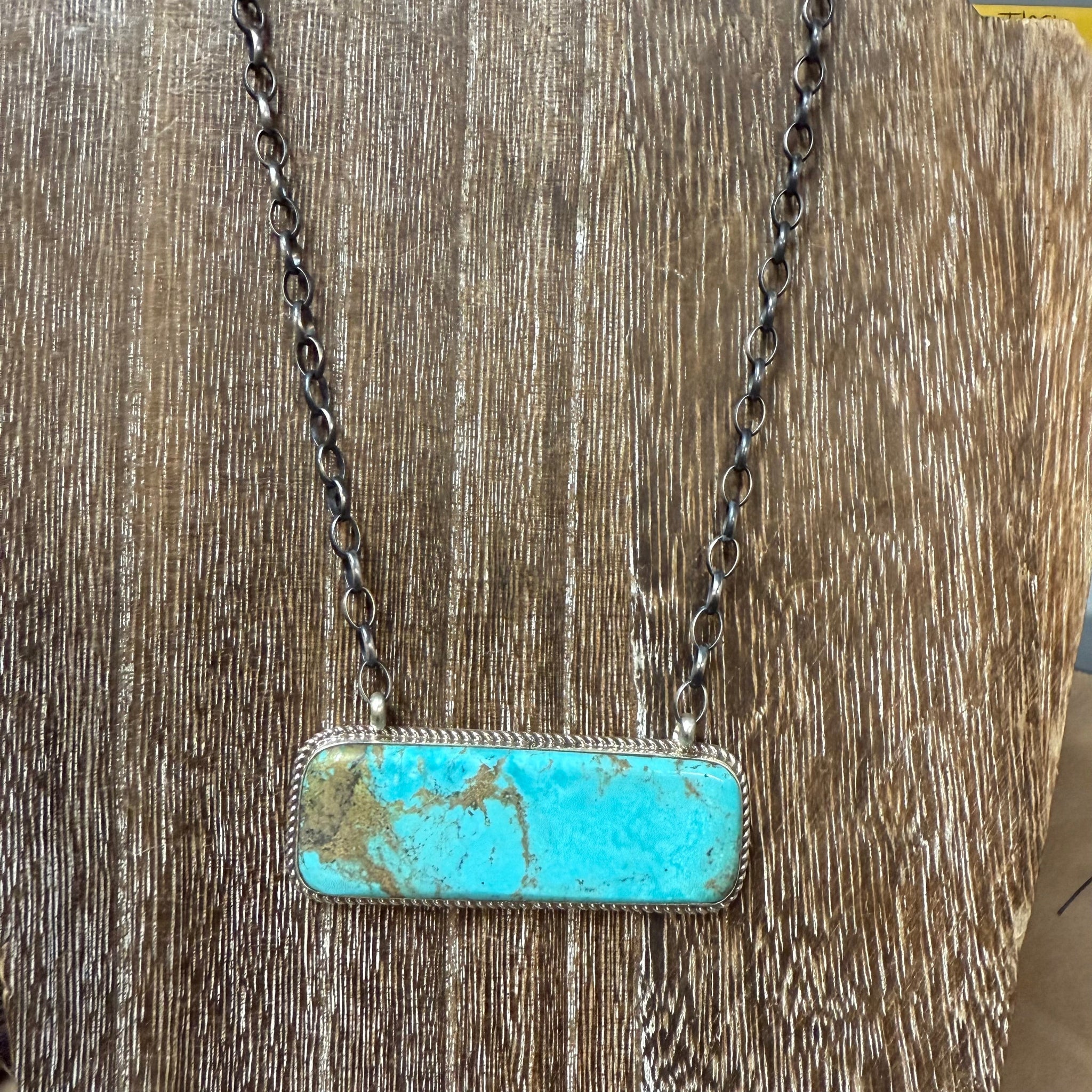 Gorgeous Turquoise Big Bar Sterling Silver Necklace