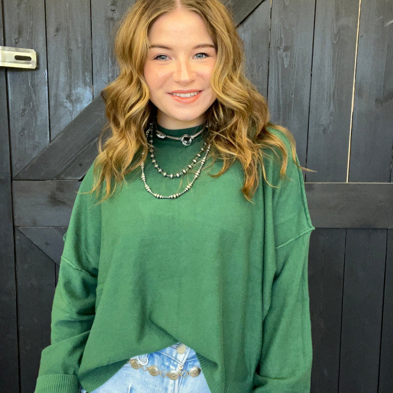 Hunter Green Super Soft Inside Out Crop Long Sleeve Sweater