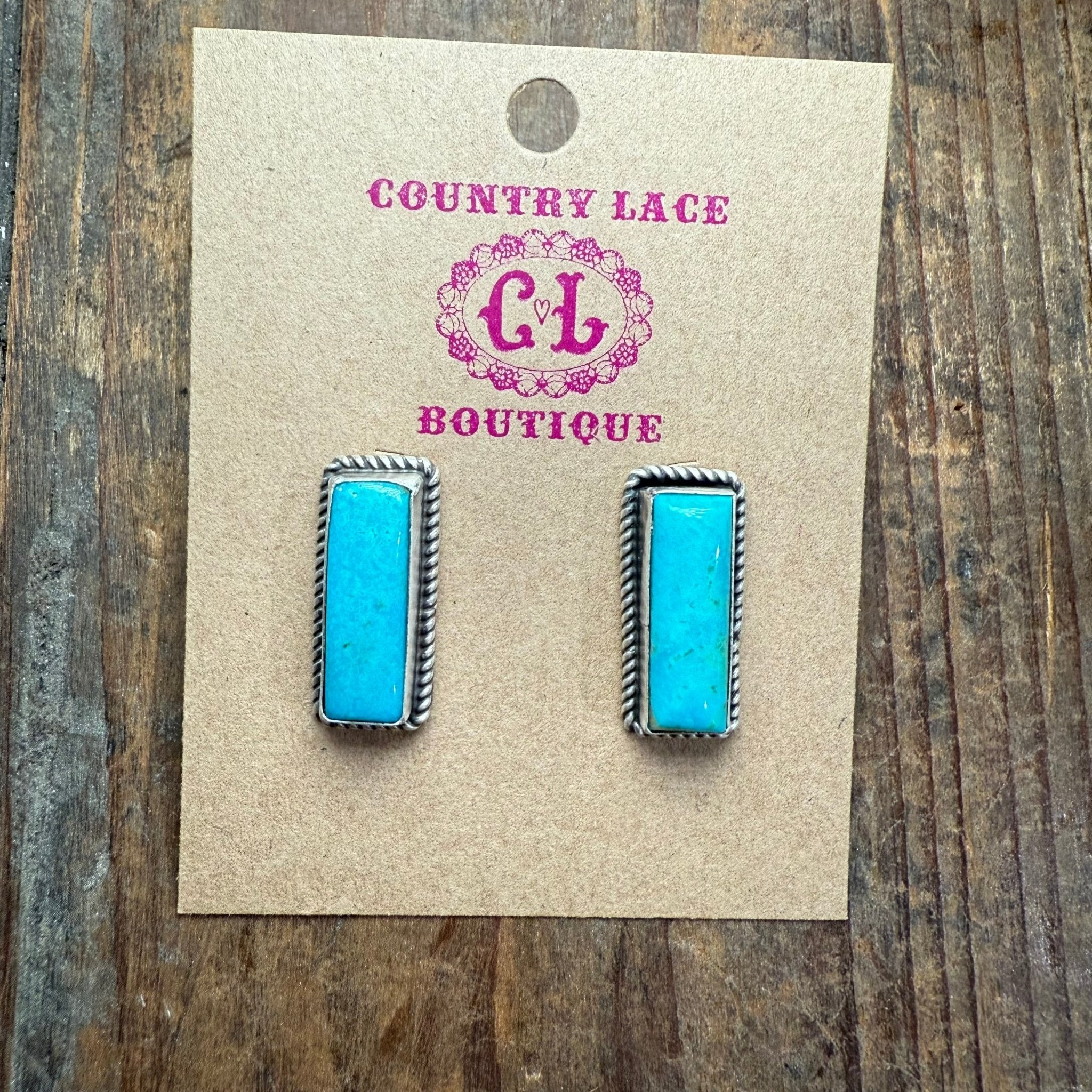 Kingman Turquoise Bar Stud Post Sterling Silver Earring
