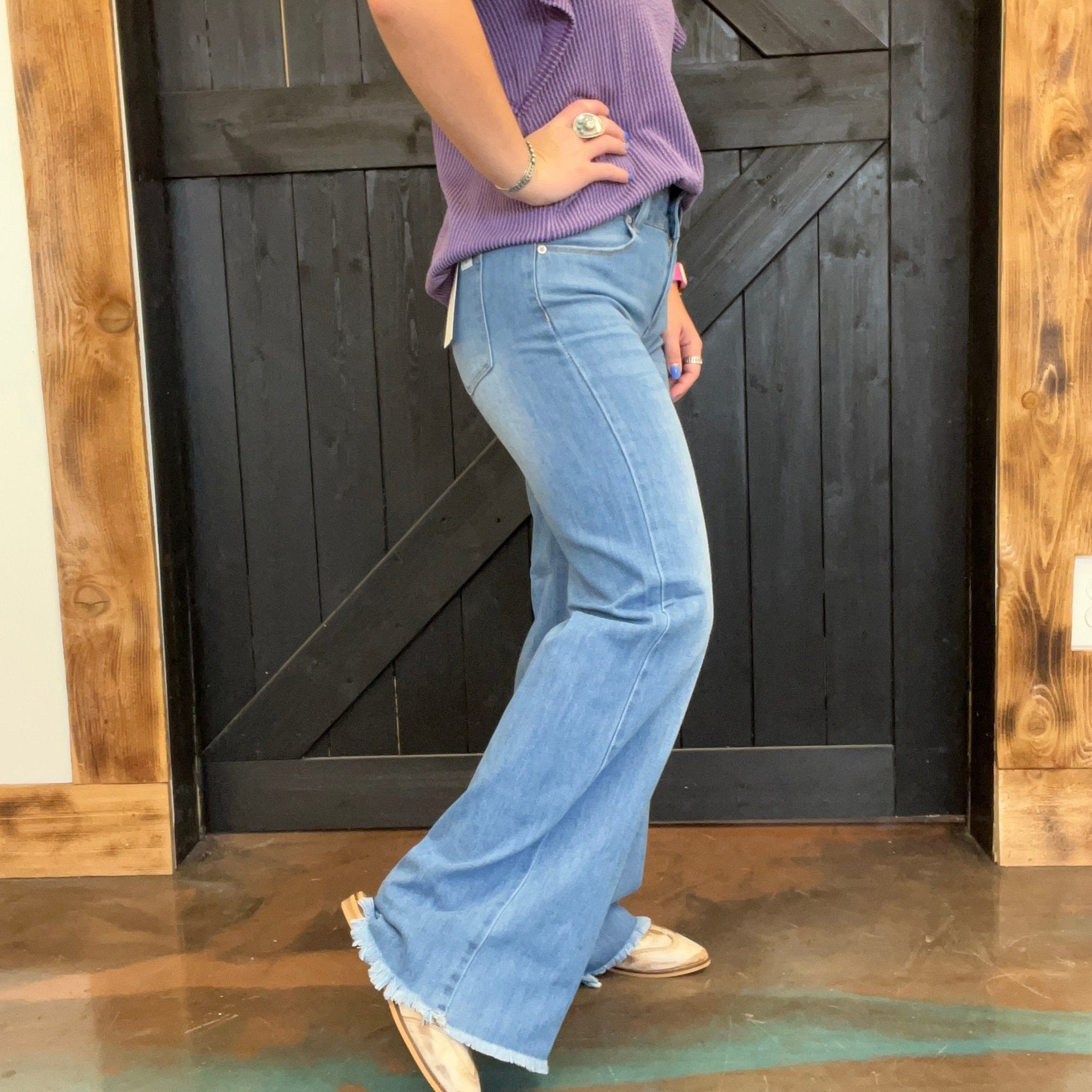 Medium Mid Rise Wide Leg with Fray Hem Jeans