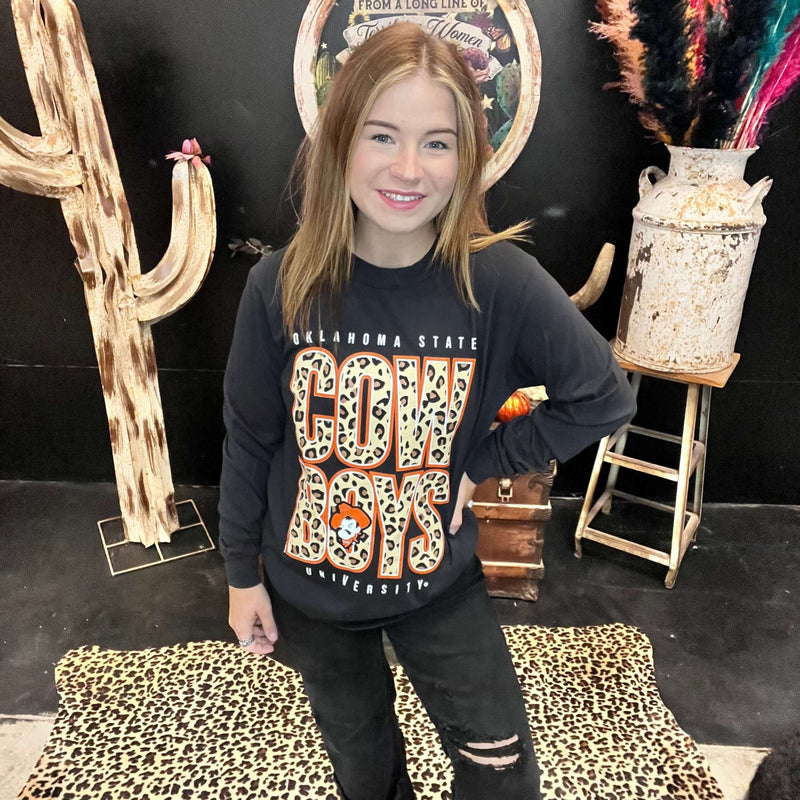 Oklahoma State Animal Print Cowboys Crew Long Sleeve Comfort Color T-shirt