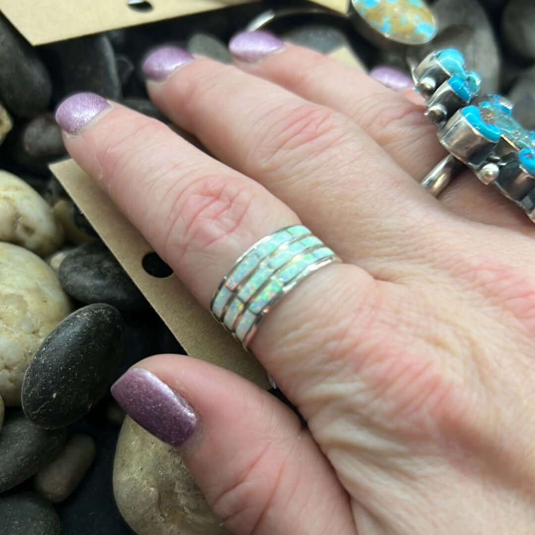 Opal ring 3 row inlay Sterling Silver Ring size 7