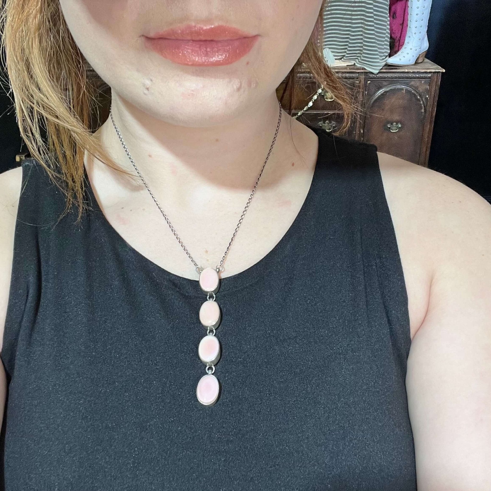 Pink Conch 4 Stone Drop Sterling Silver Necklace