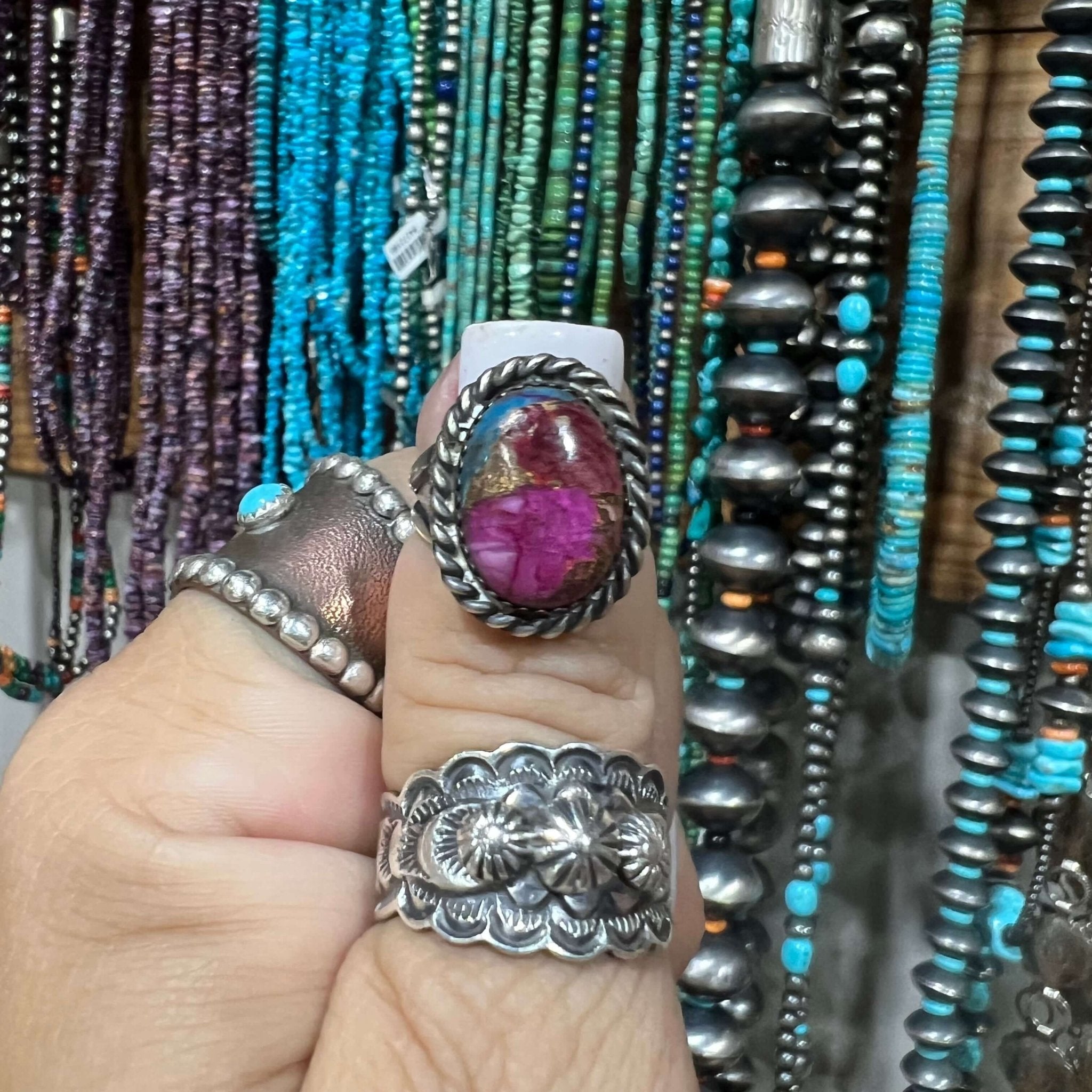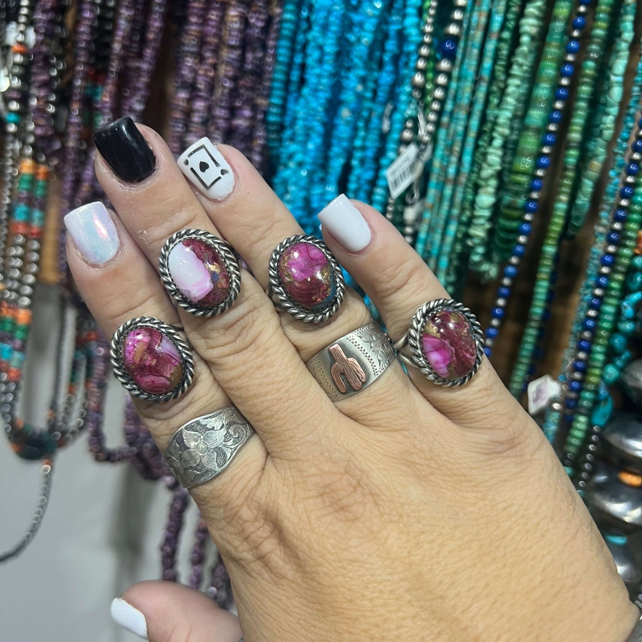 Pink Dahlia Oval Braided Sterling Silver Ring