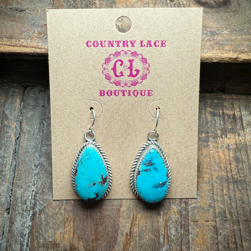 Rare Kingman Turquoise Tear Drop French Hook Sterling Silver Earring