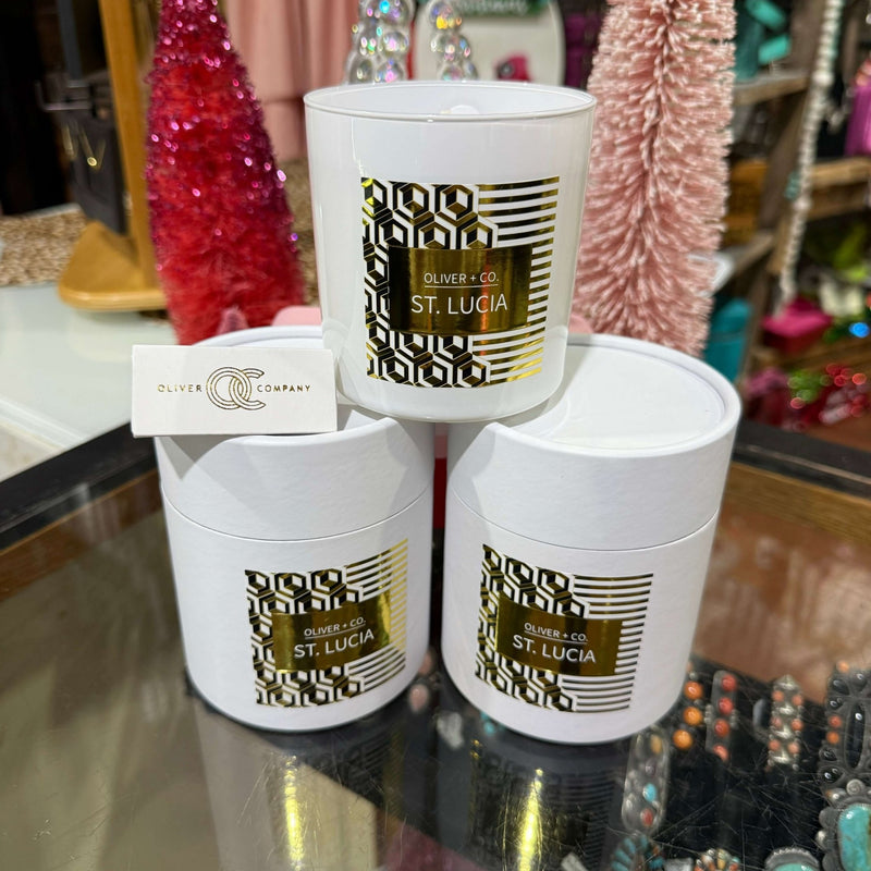 Bring the fragrance of Oliver Fragrances Co. to your home with our Signature Candle, St. Lucia. No phthalates, dyes, or irritants are added to our all-natural, soy wax candles. We hand pour our candles and hand scent them in small batches. Our wax is non-GMO and USA-grown, and our wicks are lead- and nickel-free.