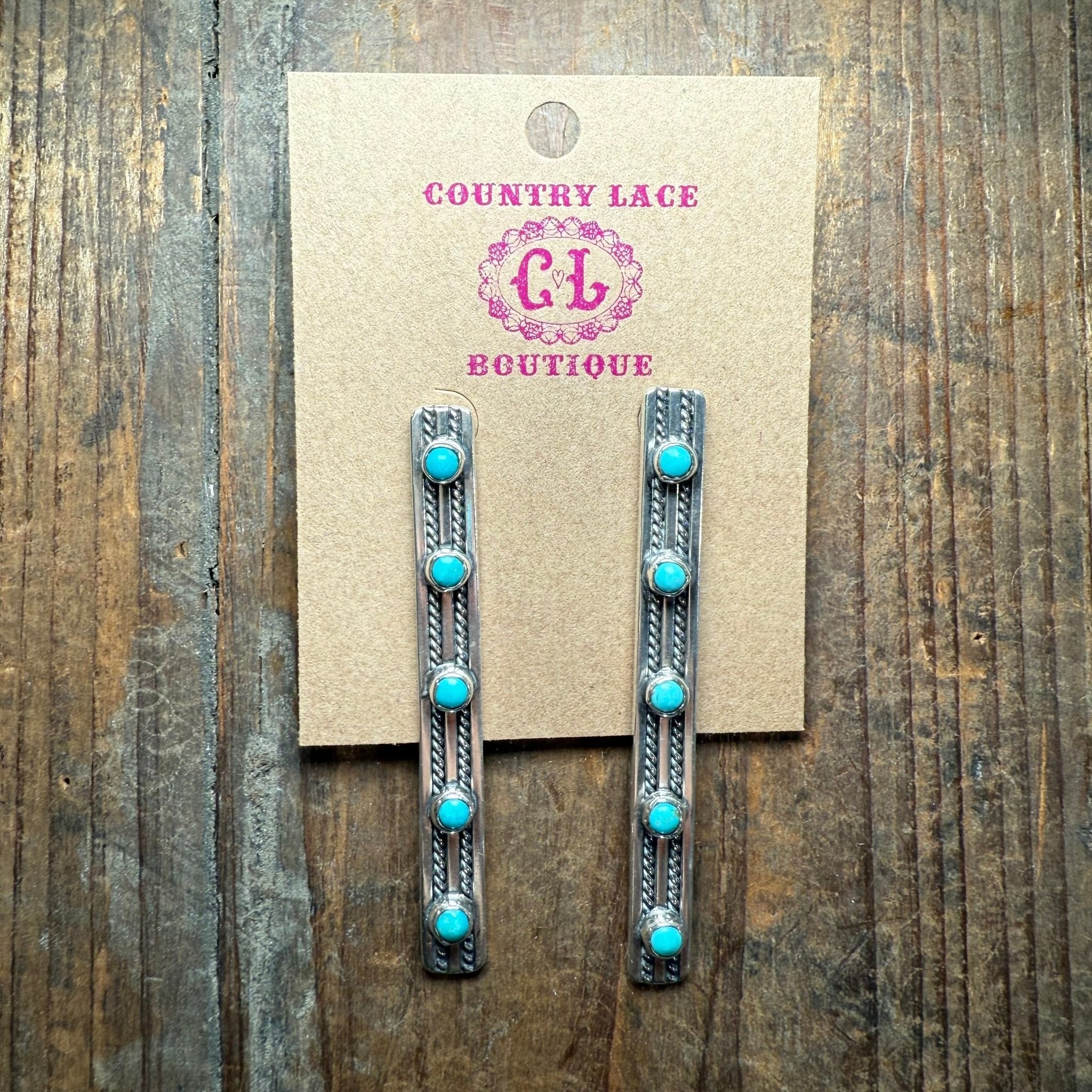 Stunning Sterling Silver Long Vertical with 5 Turquoise Stones Post Earring