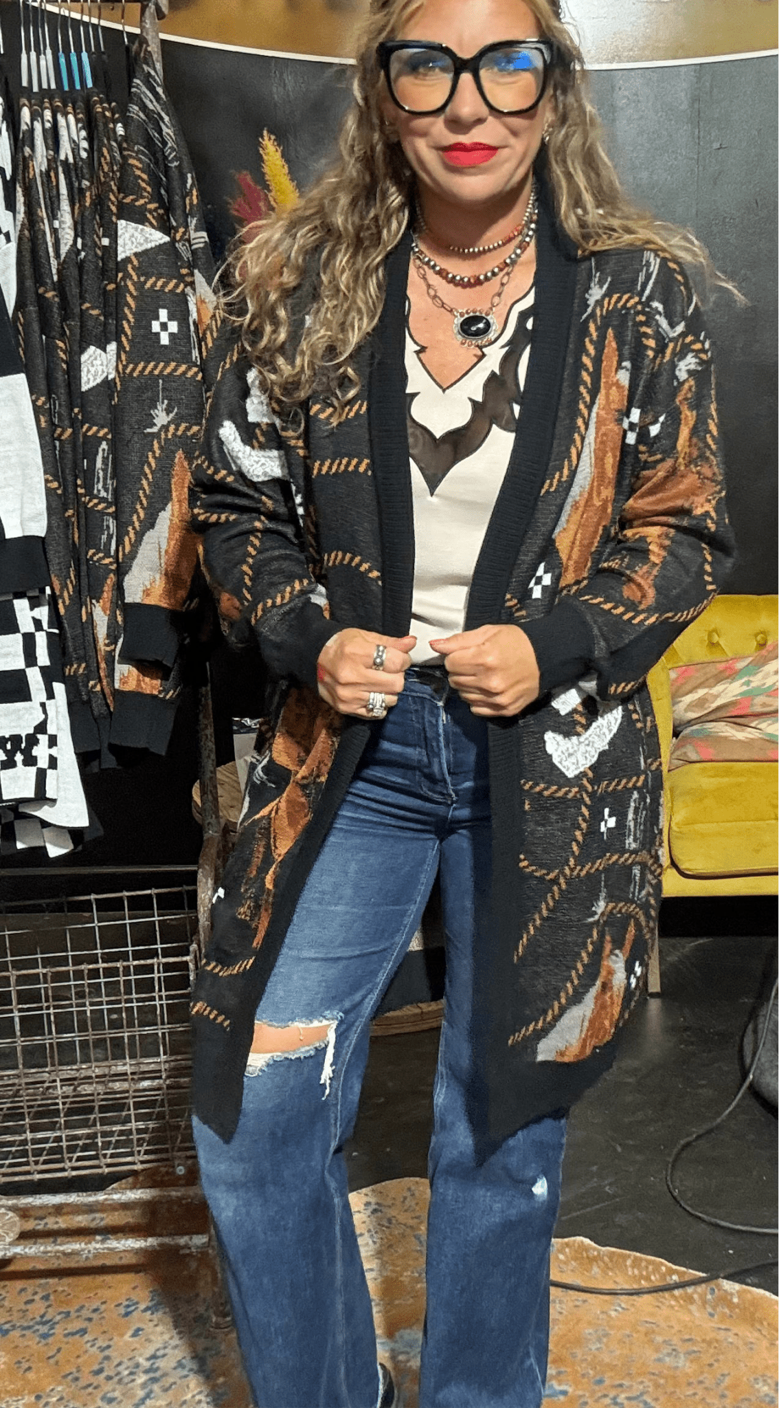 Looking for a sweater for all rodeos that stands out in the grand stands?? This western print is all the rage right now for rodeo gals and anyone who wants to be on trend.