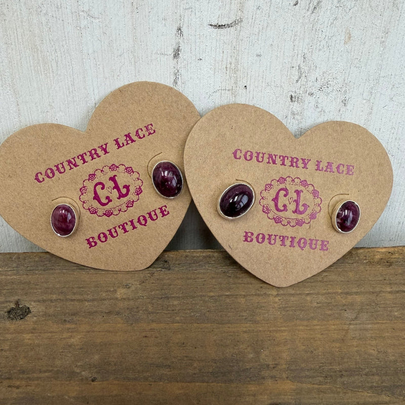 Tiny Oval Purple Spiny Post Stud Sterling Silver Earring