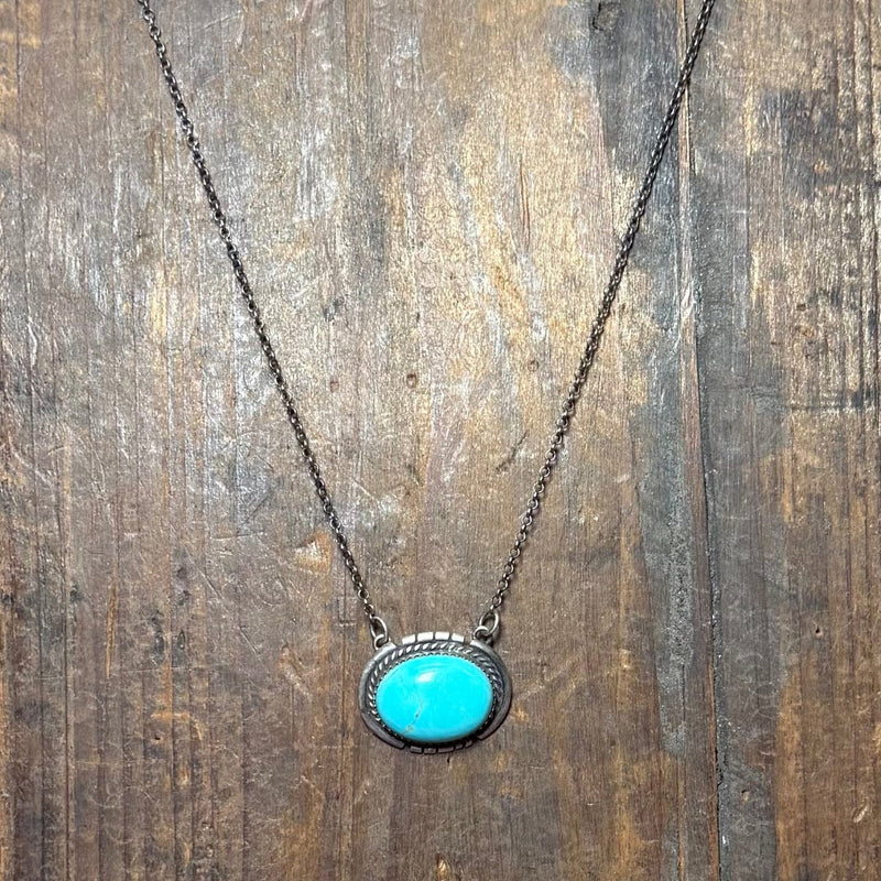 Oval Kingman Turquoise 17 inch Sterling Silver Necklace