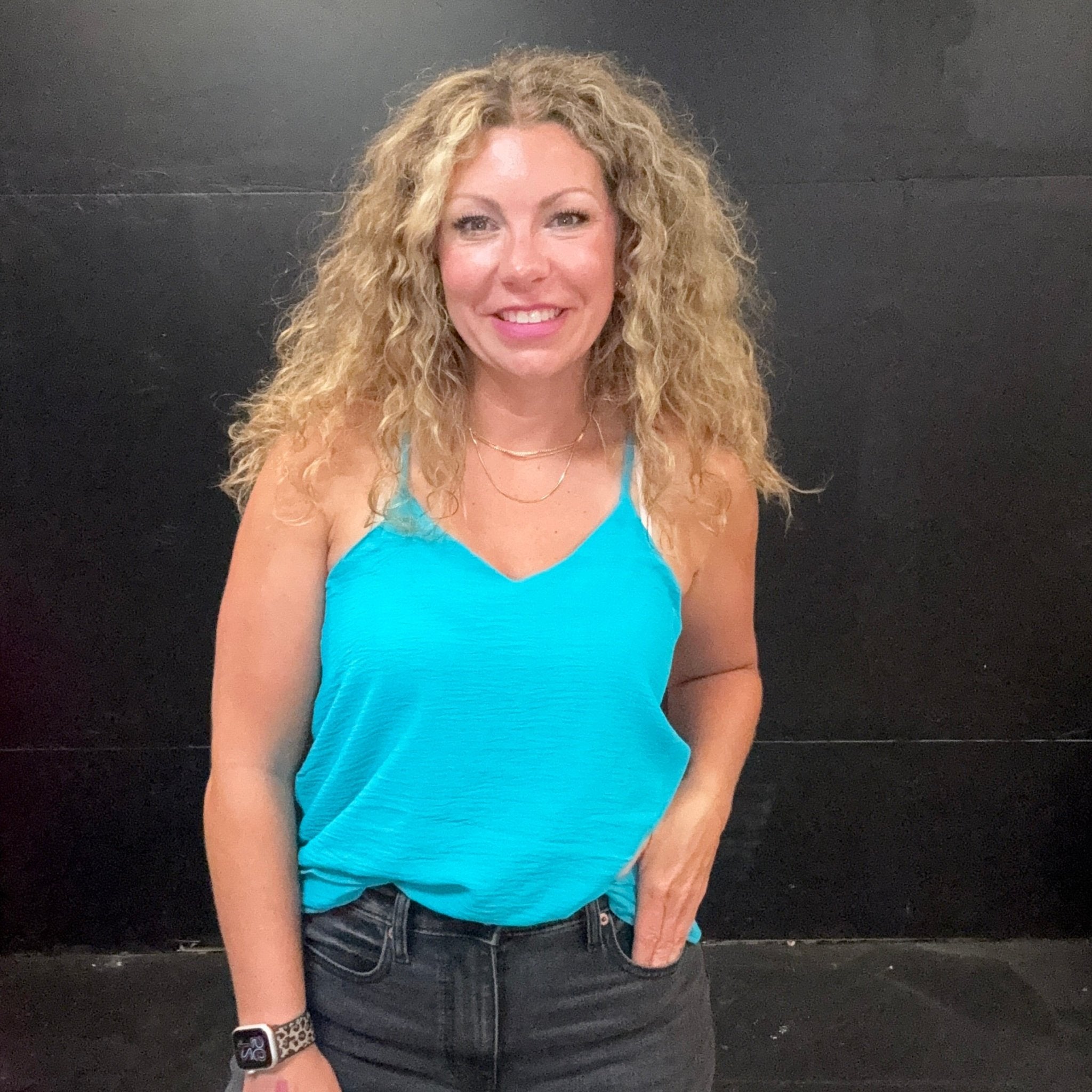Turquoise Razor Back Flowy Tank Top