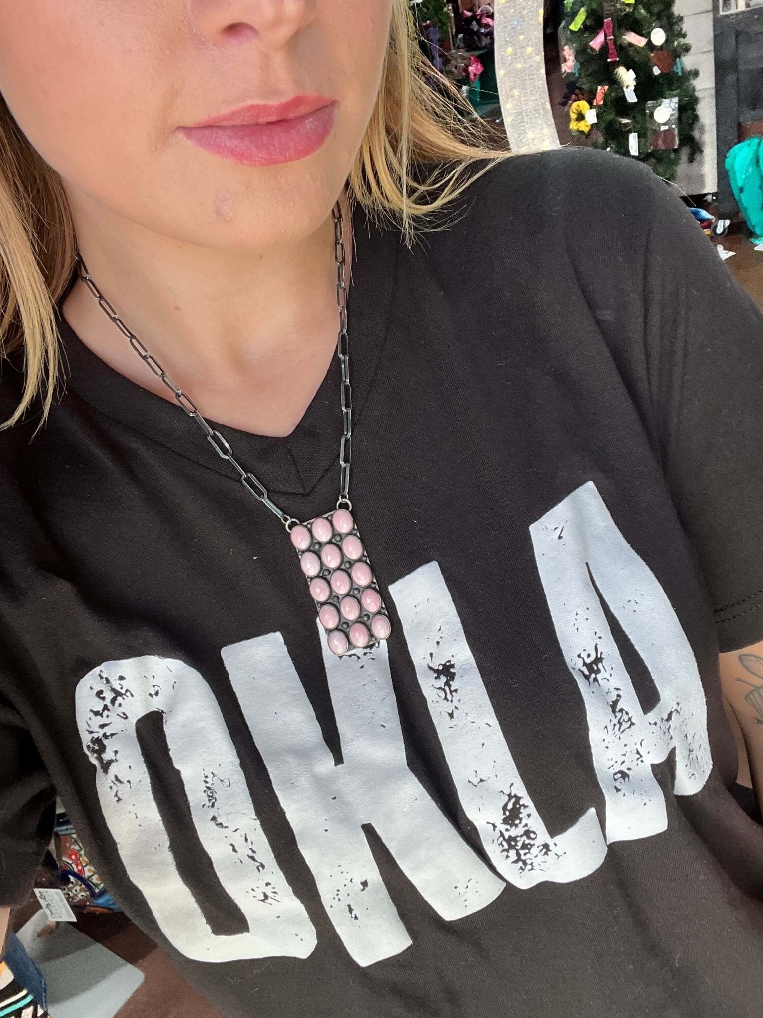 Vertical 15 Stone Pink Conch Sterling Silver Necklace