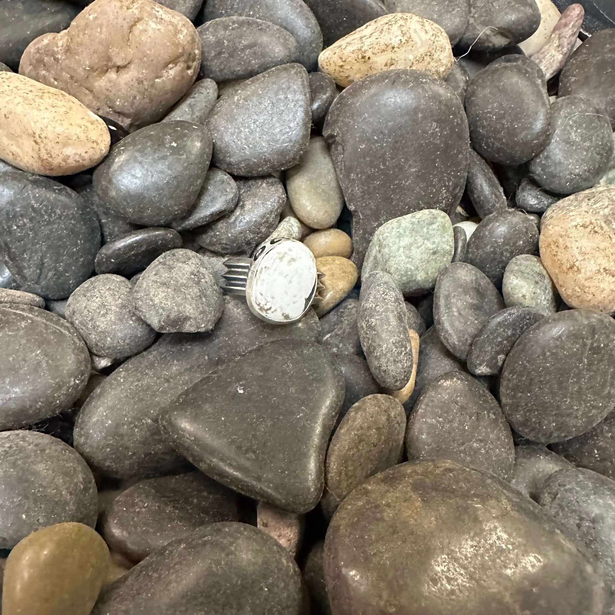 White Buffalo Oval Sterling Silver Ring SIZE 8