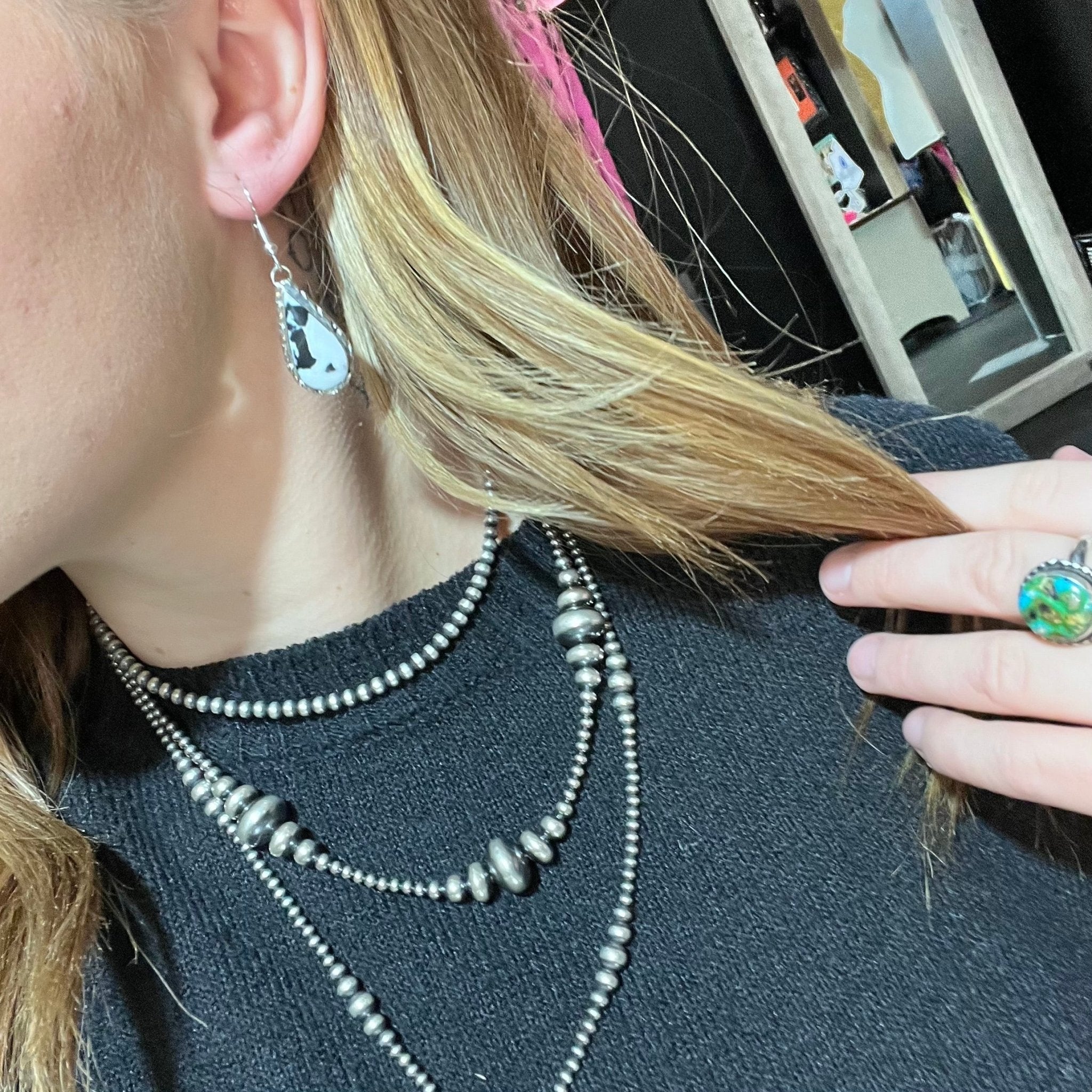 White Buffalo w/ Silver Detail French Hook Sterling Silver Earring