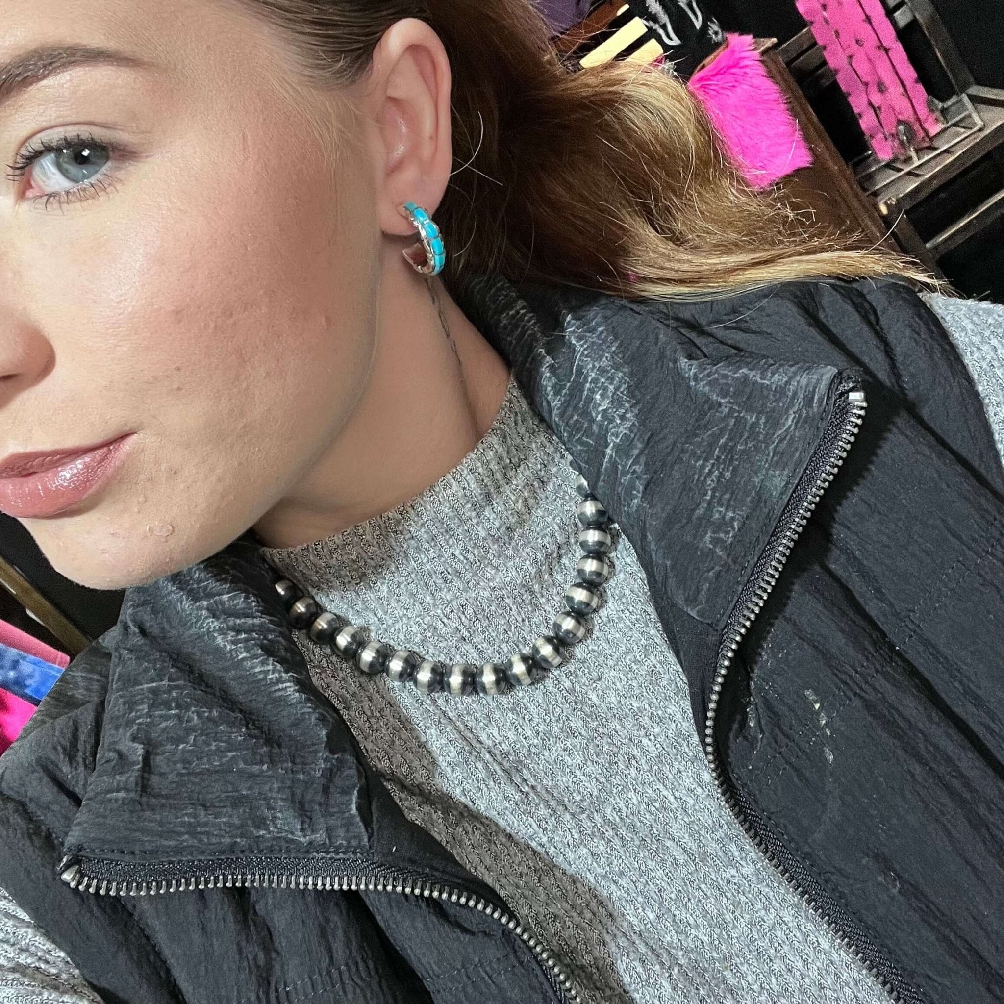 Zuni Kingman Turquoise Half Hoop Post Sterling Silver Earring